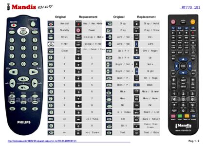 Below, we will show you the correspondence between each button on the original remote control and the button that performs the same function on the replacement remote control. In some cases, you may need to press the SHIFT key before pressing another button to perform certain actions. These additional functions are often not widely used and are included to facilitate understanding of the replacement remote control, or because the original remote control has more buttons than its equivalent.
