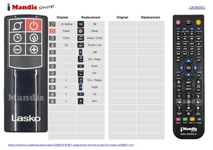 1. Look at the images of the two remote controls: the original (left) and the replacement (right).