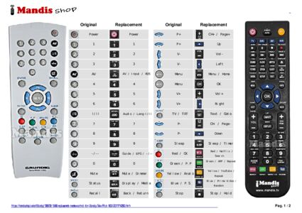 1. Look at the images of the two remote controls: the original (left) and the replacement (right).