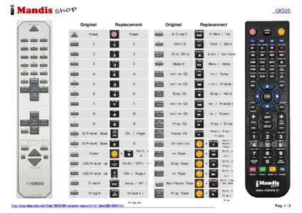 1. Look at the images of the two remote controls: the original (left) and the replacement (right).