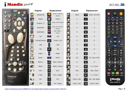 This remote control fully replaces your RCT 446 and offers all the functions of the original.