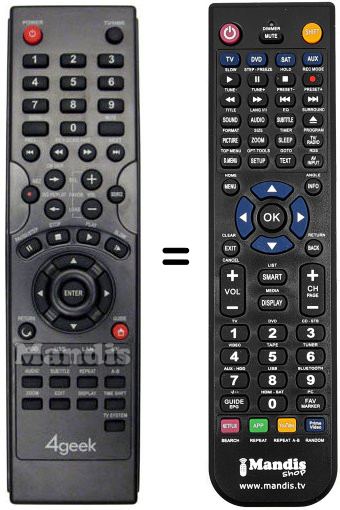 Remote control to replace the original and all its functions.