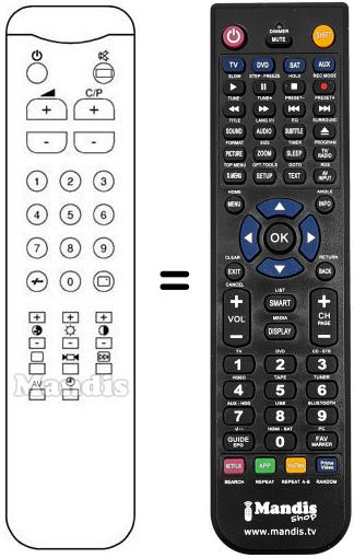 Remote control to replace the original and all its functions.