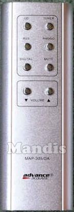 original remote control MAP-305 II / DA used for hi-fi system for the brand ADVANCE ACOUSTIC. This is an original remote control.
