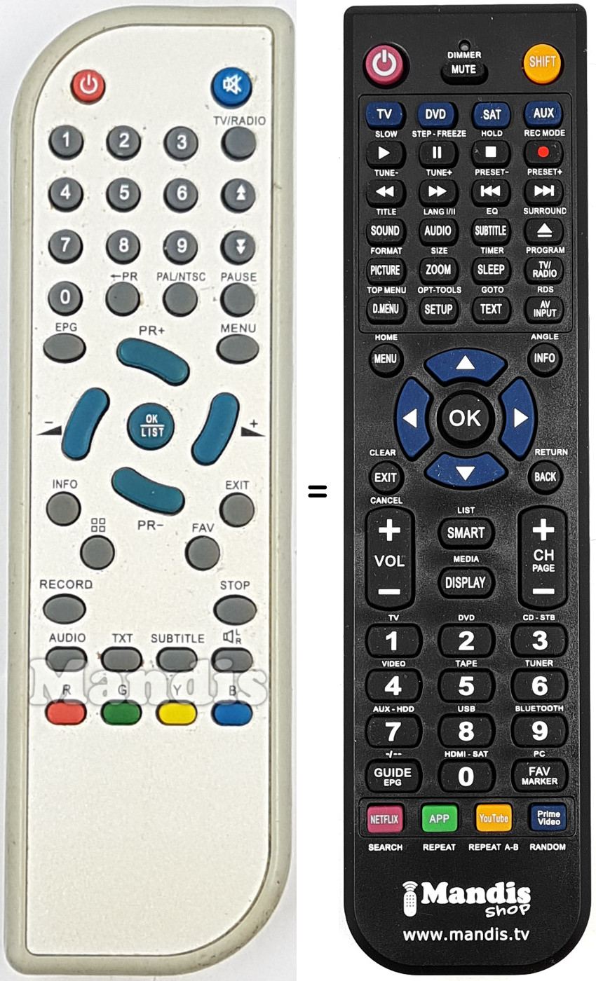 Remote control to replace the original and all its functions.