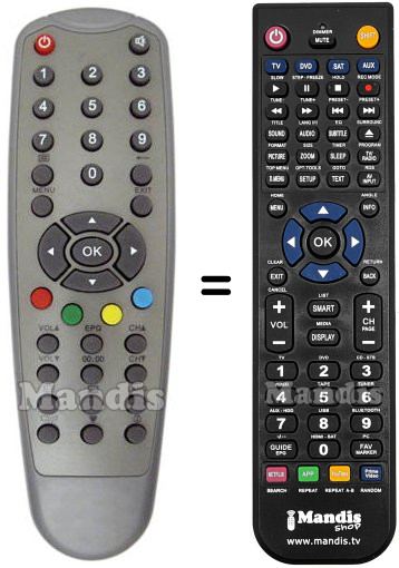 Below, we will show you the correspondence between each button on the original remote control and the button that performs the same function on the replacement remote control. In some cases, you may need to press the SHIFT key before pressing another button to perform certain actions. These additional functions are often not widely used and are included to facilitate understanding of the replacement remote control, or because the original remote control has more buttons than its equivalent.