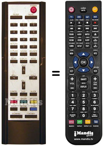 Remote control to replace the original and all its functions.