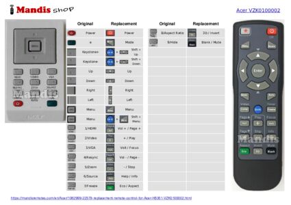 replacement remote control VZK0100001 for Acer.