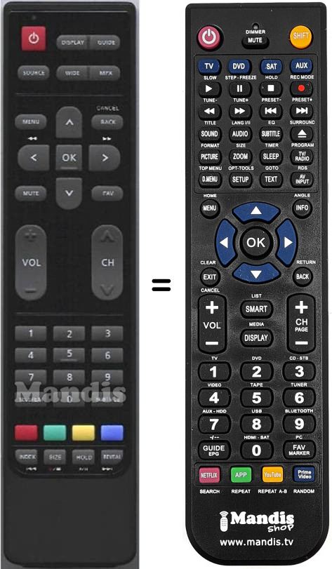Remote control to replace the original and all its functions.