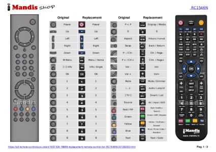 A document is included to help you use the new remote control easily, showing the button correspondence.