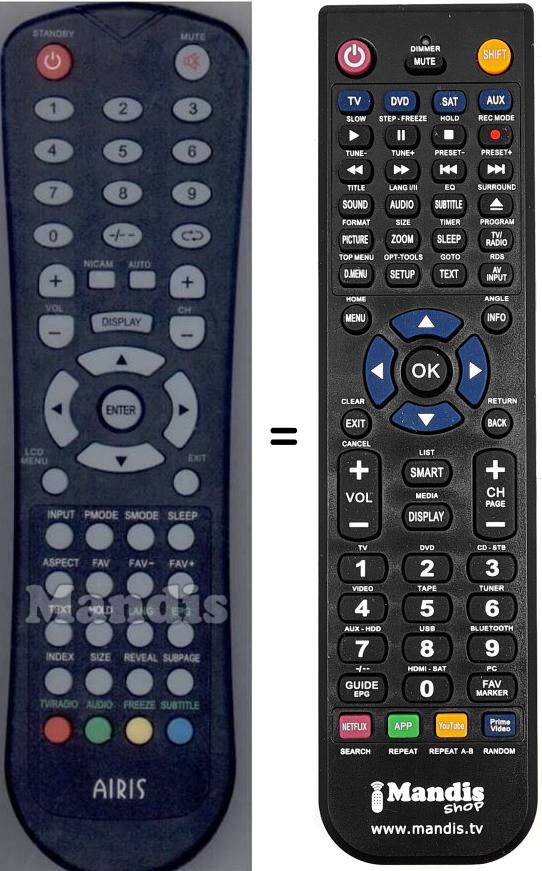 Remote control to replace the original and all its functions.