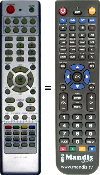 This remote control fully replaces your DDR-V7-D1 and offers all the functions of the original.