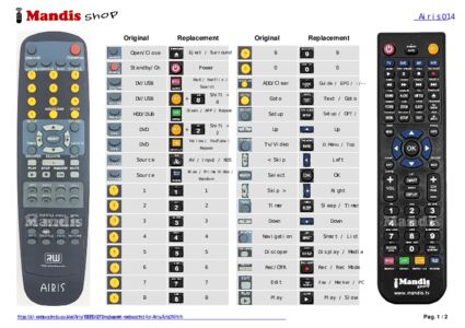 This remote control fully replaces your Airis014 and offers all the functions of the original.
