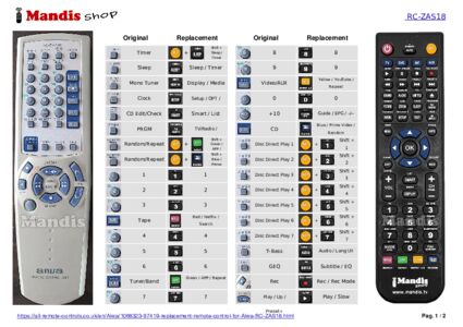 This remote control replaces most of the functions of your RC-ZAS18. It is not a universal remote control, but a copy with most of the buttons and functions of your original.