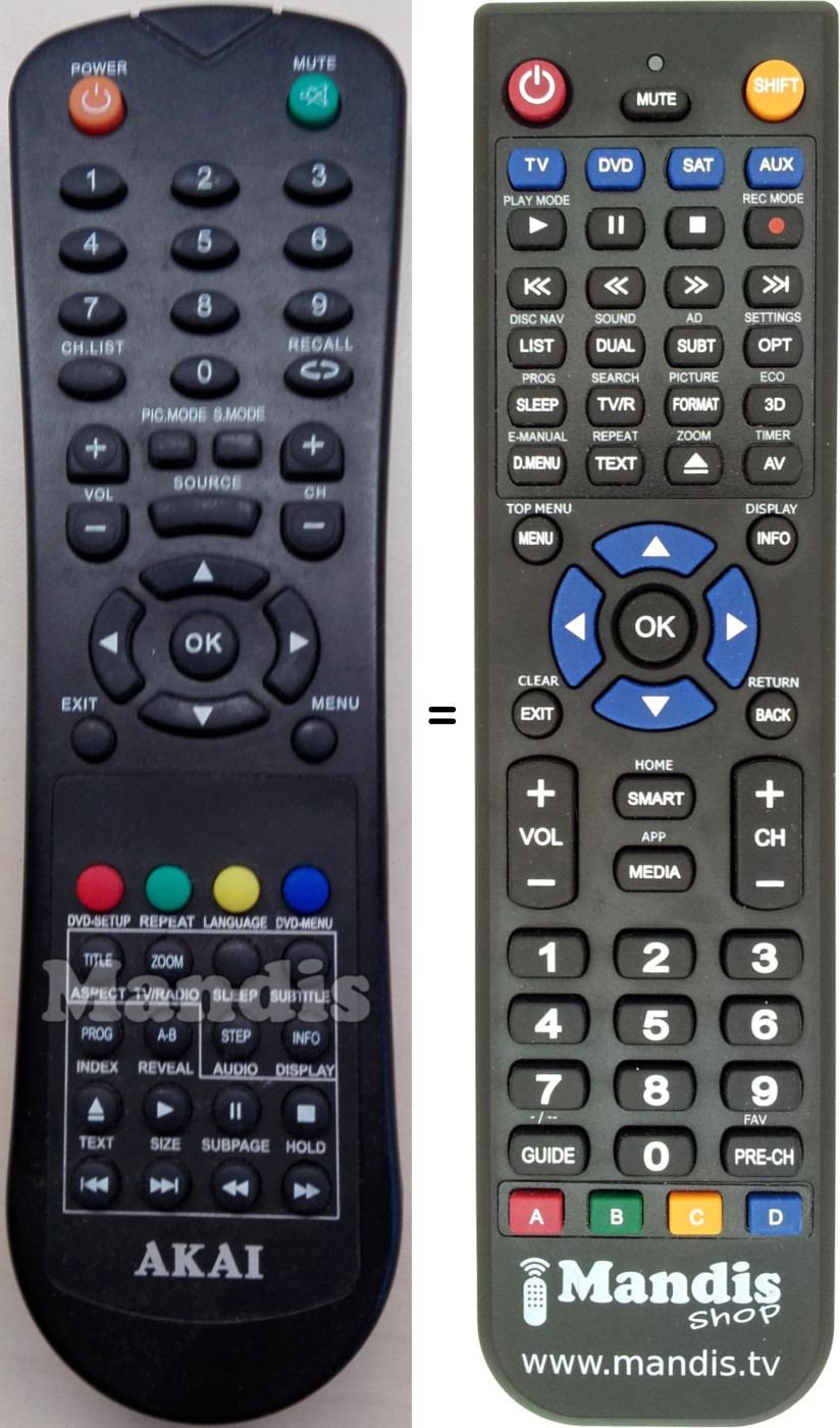 This remote control fully replaces your AKTV201D and offers all the functions of the original.