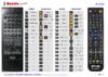 This remote control performs all the functions of the original remote control: Power On, Standby, TUNER RDS, TUNER Band, TUNER Direct, TUNER P.Call+, TUNER P.Call-, TUNER Tuning+, TUNER Tuning-, TUNER 1, TUNER 2, TUNER 3, TUNER 4, TUNER 5, TUNER 6, TUNER 7, TUNER 8, TUNER 9, TUNER 0, AV-3, AV-2, AV-1, TUNER, PHONO, TAPE-1/MD I, TAPE-1/MD II, TAPE-2, Disc Skip, CD, TAPE Rev. Play, TAPE Stop, TAPE Play, TAPE <<, TAPE Rec, TAPE >>, CD Stop, CD Play/Pause, CD <<, CD >>, CD I<<, CD >>I, SURROUND On/Off, SURROUND Mode, SURROUND Delay, Rear+, Rear-, Center+, Center-, Test, Center Mode, Mute, Volume-, Volume+