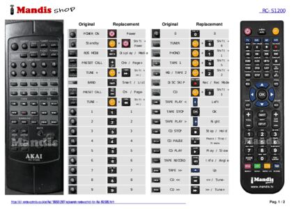 Attention: This remote control replaces most of the functions of your RC-S1200, but not all. The main functions are included, but some secondary functions may not be available.