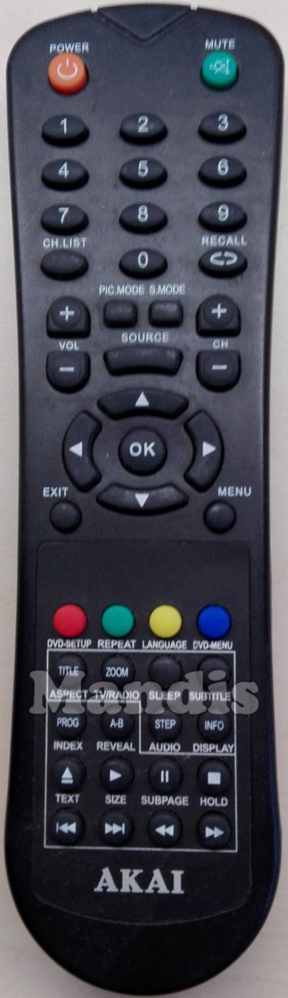 original remote control AKTV201D used for televisions for the brand Akai. This is an original remote control.