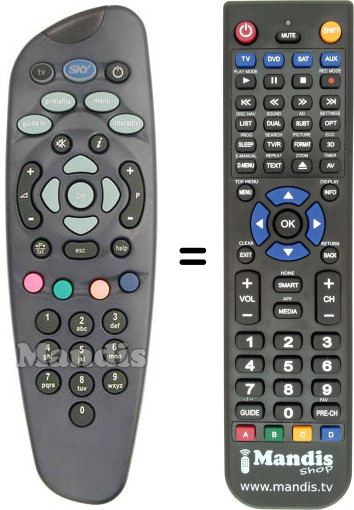 Below, we will show you the correspondence between each button on the original remote control and the button that performs the same function on the replacement remote control. In some cases, you may need to press the SHIFT key before pressing another button to perform certain actions. These additional functions are often not widely used and are included to facilitate understanding of the replacement remote control, or because the original remote control has more buttons than its equivalent.
