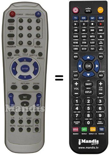 Remote control to replace the original and all its functions.