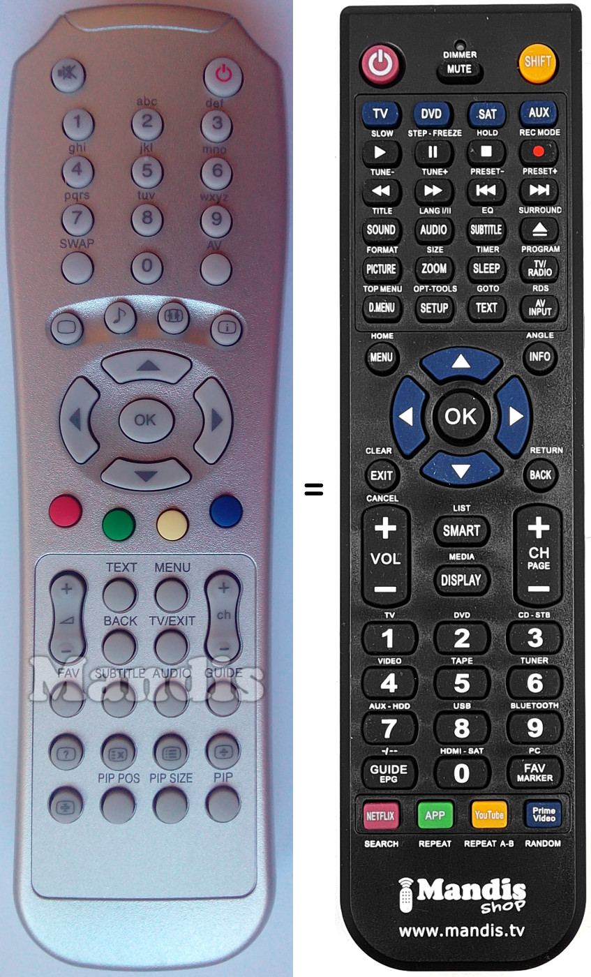 Remote control to replace the original and all its functions.