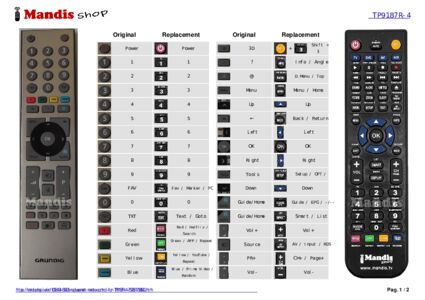 This remote control fully replaces your TP9187R-4 and offers all the functions of the original.