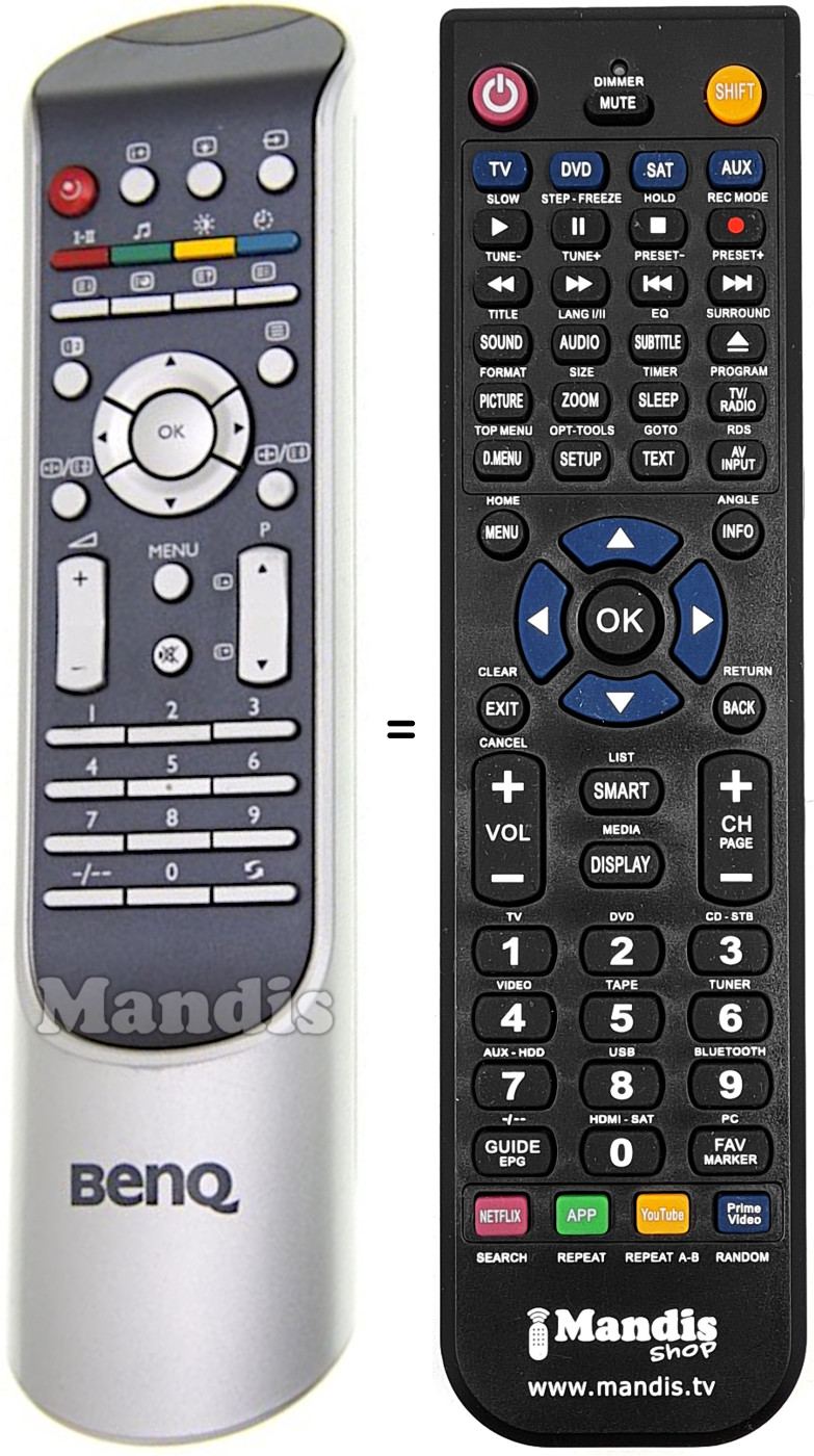 Remote control to replace the original and all its functions.