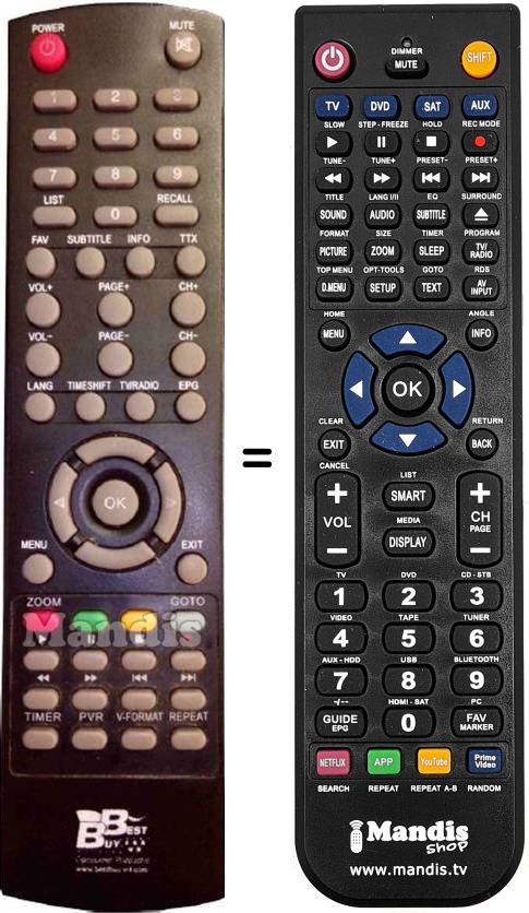 Remote control to replace the original and all its functions.