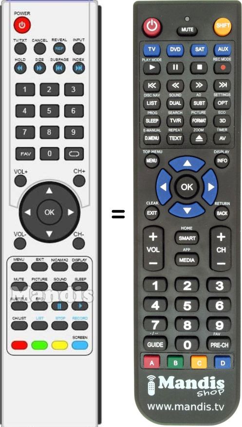 Below, we will show you the correspondence between each button on the original remote control and the button that performs the same function on the replacement remote control. In some cases, you may need to press the SHIFT key before pressing another button to perform certain actions. These additional functions are often not widely used and are included to facilitate understanding of the replacement remote control, or because the original remote control has more buttons than its equivalent.