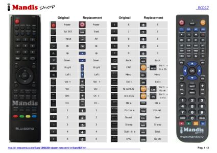 A document is included to help you use the new remote control easily, showing the button correspondence.
