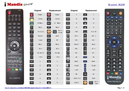 A document is included to help you use the new remote control easily, showing the button correspondence.
