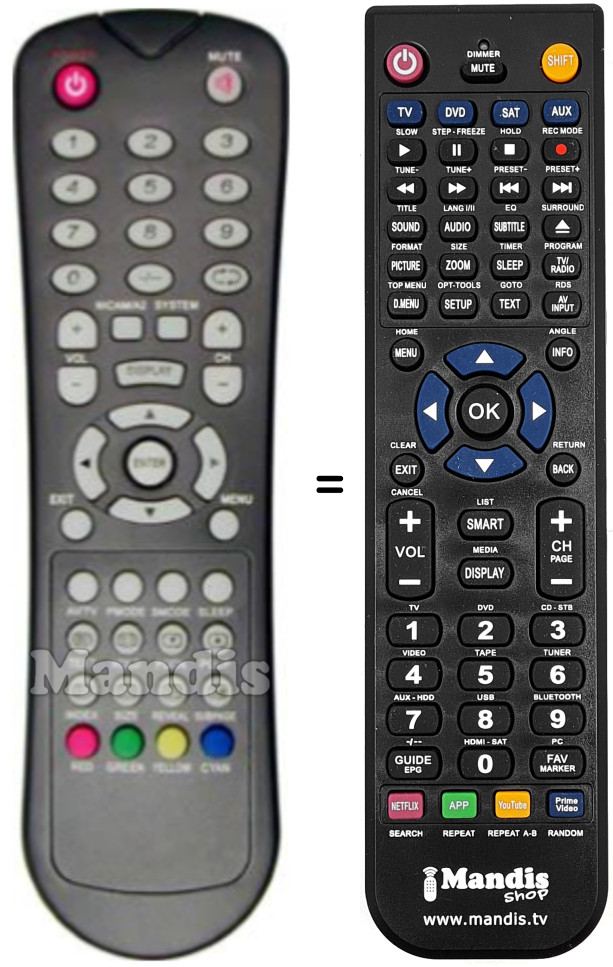Remote control to replace the original and all its functions.