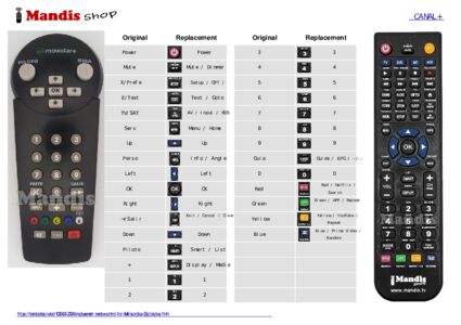 Below, we will show you the correspondence between each button on the original remote control and the button that performs the same function on the replacement remote control. In some cases, you may need to press the SHIFT key before pressing another button to perform certain actions. These additional functions are often not widely used and are included to facilitate understanding of the replacement remote control, or because the original remote control has more buttons than its equivalent.
