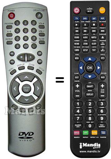 Remote control to replace the original and all its functions.