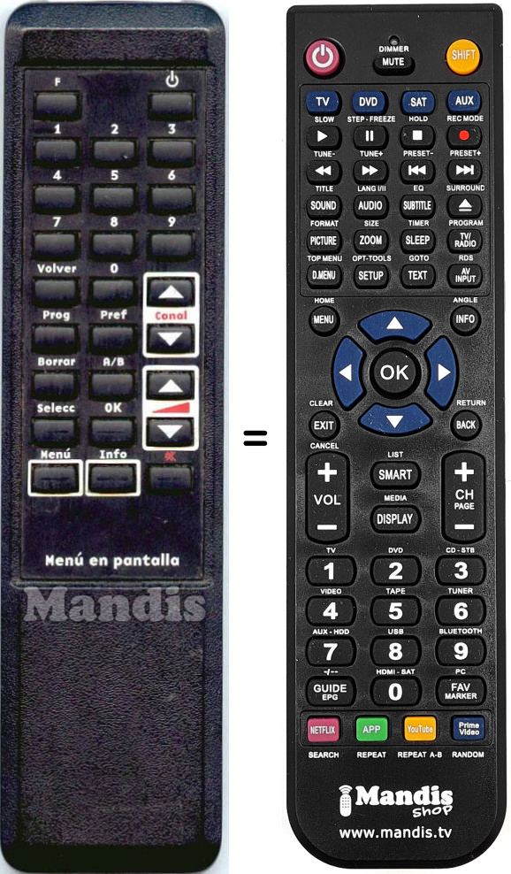 Remote control to replace the original and all its functions.