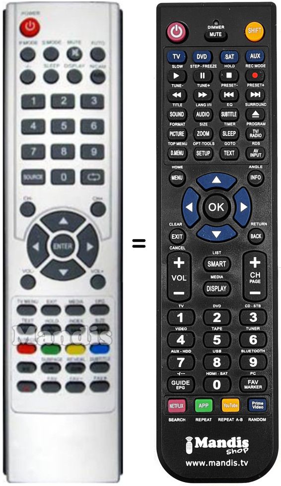 Remote control to replace the original and all its functions.