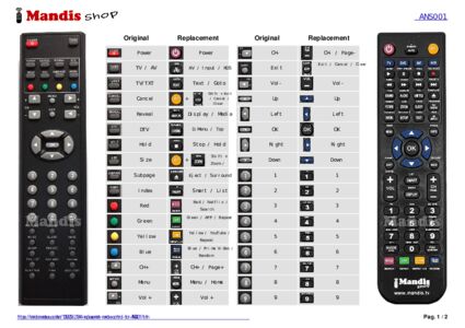 A document is included to help you use the new remote control easily, showing the button correspondence.
