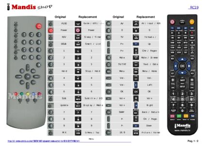 Below, we will show you the correspondence between each button on the original remote control and the button that performs the same function on the replacement remote control. In some cases, you may need to press the SHIFT key before pressing another button to perform certain actions. These additional functions are often not widely used and are included to facilitate understanding of the replacement remote control, or because the original remote control has more buttons than its equivalent.