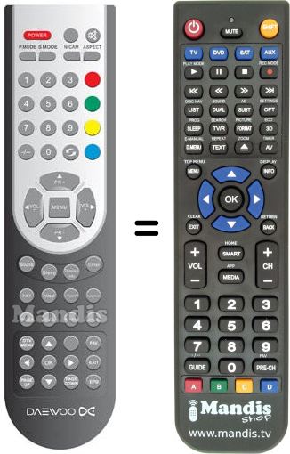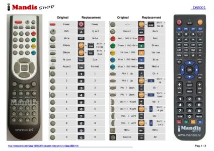 Below, we will show you the correspondence between each button on the original remote control and the button that performs the same function on the replacement remote control. In some cases, you may need to press the SHIFT key before pressing another button to perform certain actions. These additional functions are often not widely used and are included to facilitate understanding of the replacement remote control, or because the original remote control has more buttons than its equivalent.