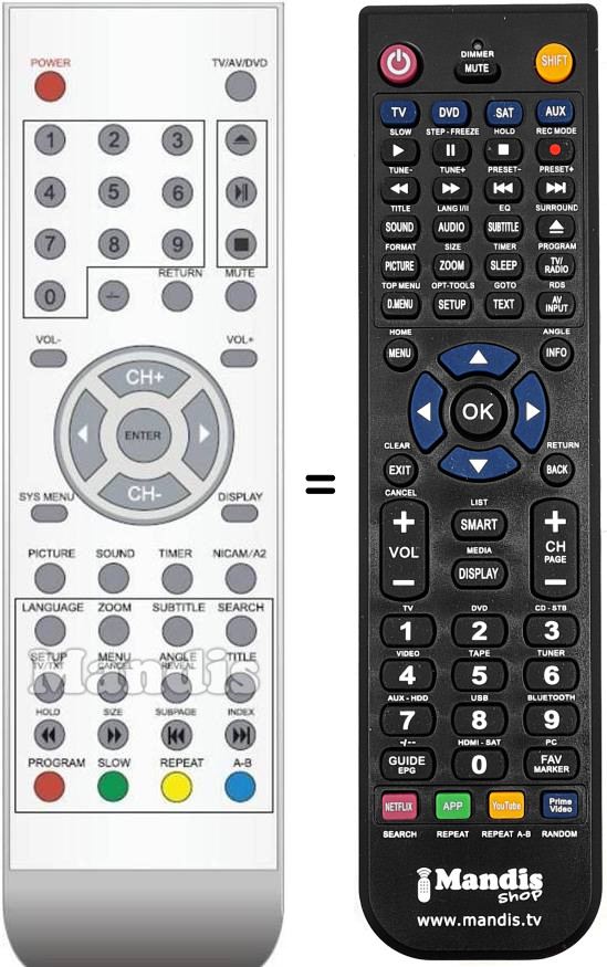 Remote control to replace the original and all its functions.