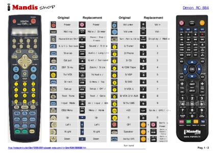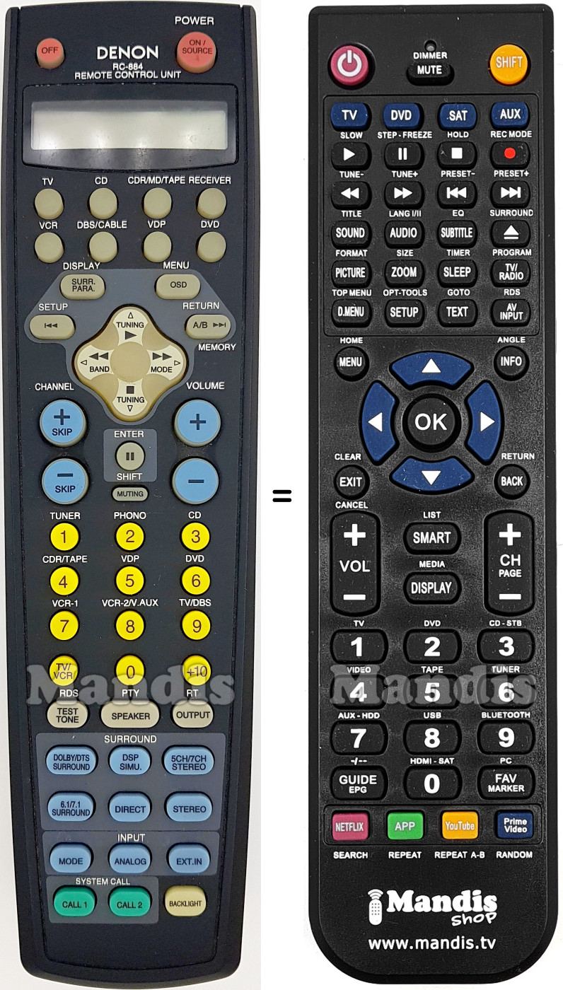This remote control fully replaces your RC-884 (RECEIVER-DPS and offers all the functions of the original.