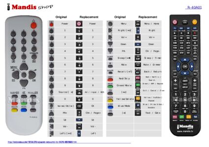 Below, we will show you the correspondence between each button on the original remote control and the button that performs the same function on the replacement remote control. In some cases, you may need to press the SHIFT key before pressing another button to perform certain actions. These additional functions are often not widely used and are included to facilitate understanding of the replacement remote control, or because the original remote control has more buttons than its equivalent.