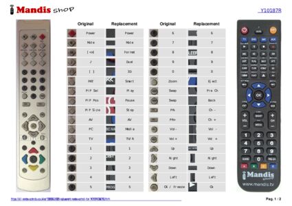 A document is included to help you use the new remote control easily, showing the button correspondence.