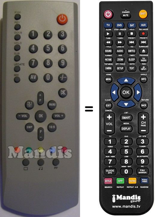Remote control to replace the original and all its functions.