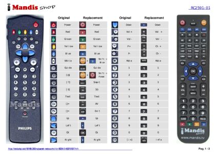 Below, we will show you the correspondence between each button on the original remote control and the button that performs the same function on the replacement remote control. In some cases, you may need to press the SHIFT key before pressing another button to perform certain actions. These additional functions are often not widely used and are included to facilitate understanding of the replacement remote control, or because the original remote control has more buttons than its equivalent.