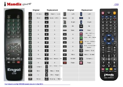 Below, we will show you the correspondence between each button on the original remote control and the button that performs the same function on the replacement remote control. In some cases, you may need to press the SHIFT key before pressing another button to perform certain actions. These additional functions are often not widely used and are included to facilitate understanding of the replacement remote control, or because the original remote control has more buttons than its equivalent.