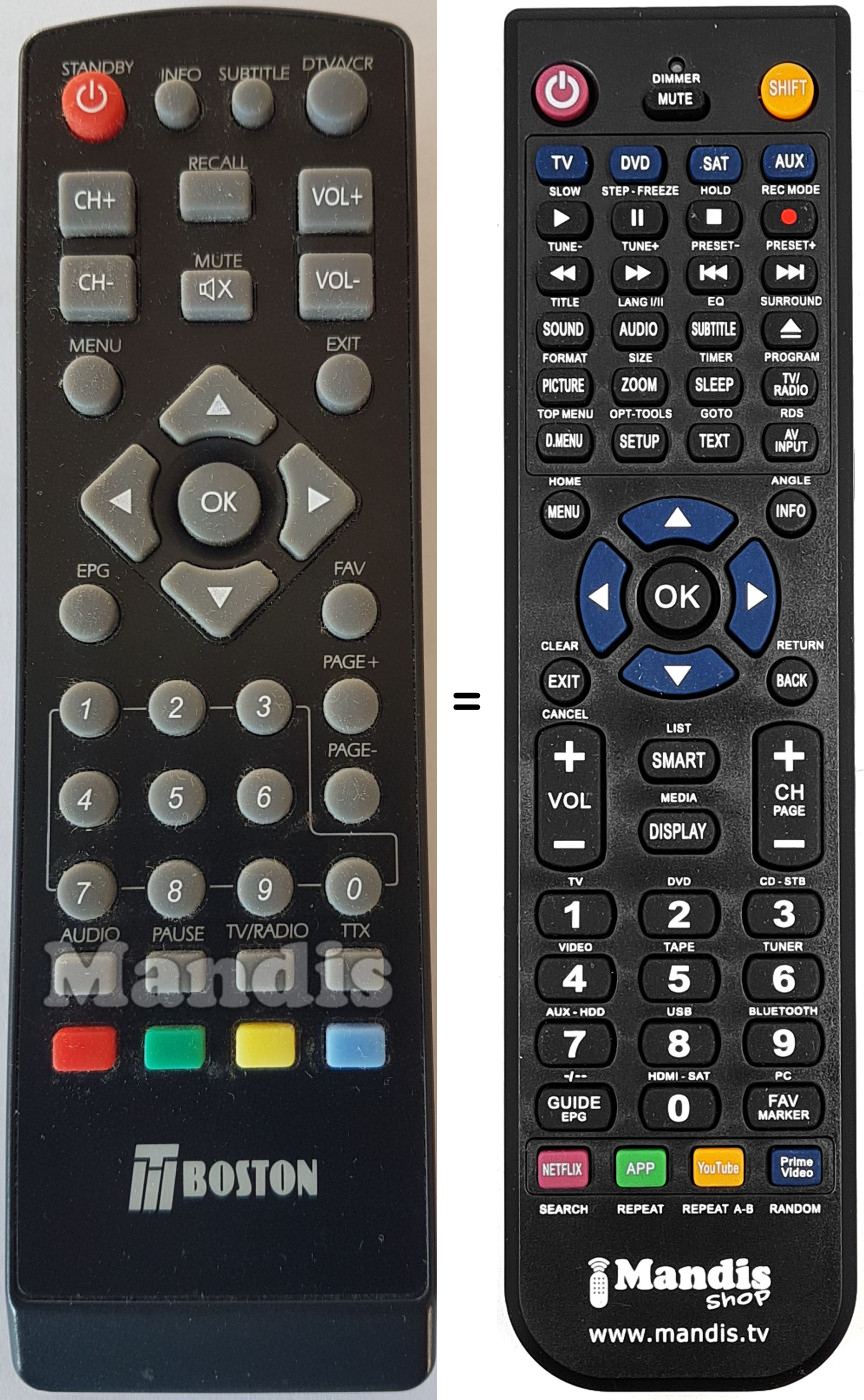 Remote control to replace the original and all its functions.