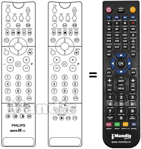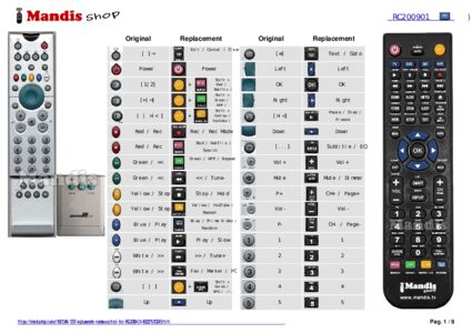 Below, we will show you the correspondence between each button on the original remote control and the button that performs the same function on the replacement remote control. In some cases, you may need to press the SHIFT key before pressing another button to perform certain actions. These additional functions are often not widely used and are included to facilitate understanding of the replacement remote control, or because the original remote control has more buttons than its equivalent.