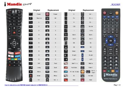 This remote control fully replaces your RC4390P (30101765) and offers all the functions of the original.