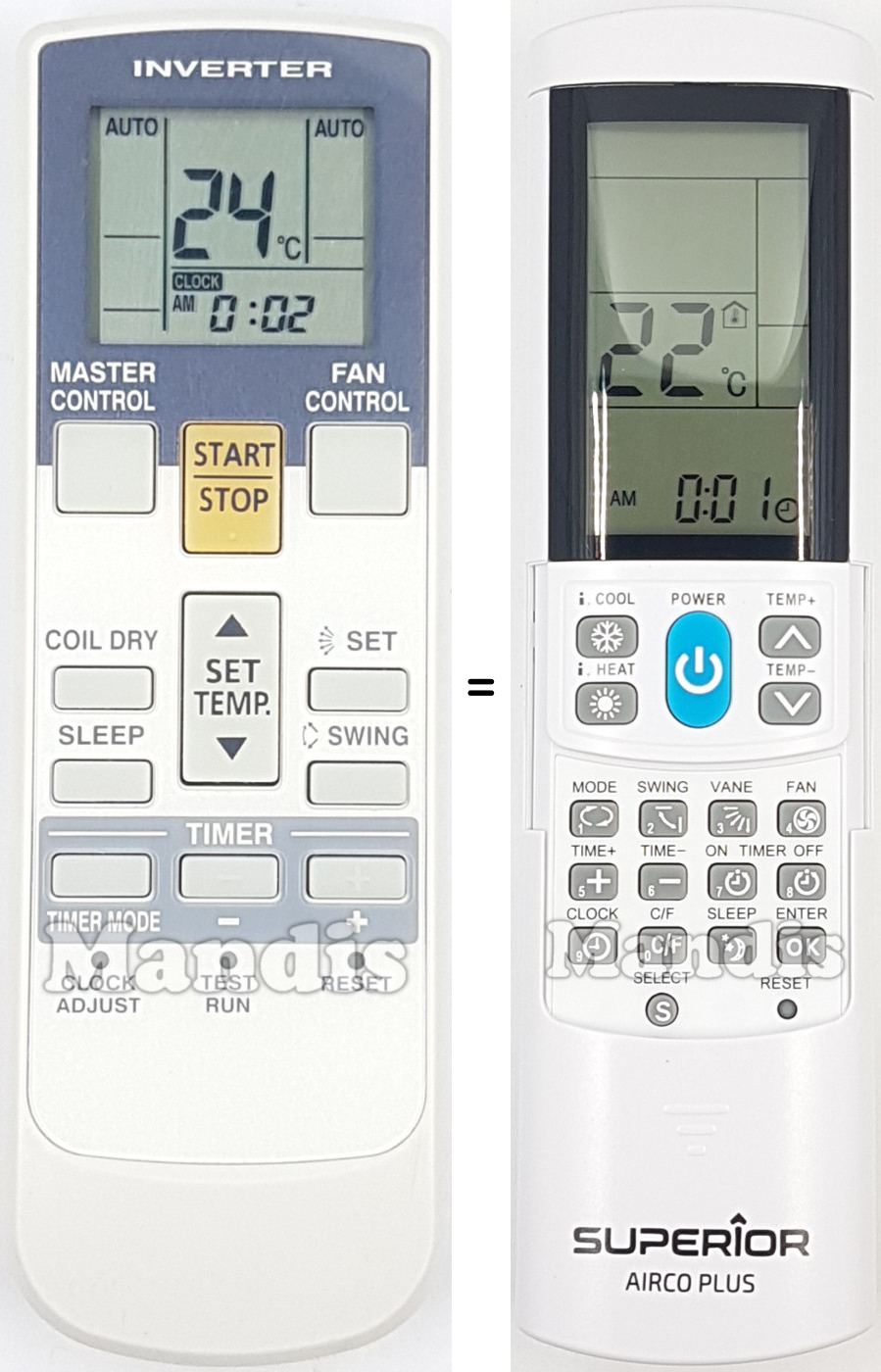 My LG air-conditioner's remote died and need replacement. AircoPlus did the job. I should point out that the code match did not correspond according to manufacturer's table. Let the auto-search code set up do the work. Also, excellent service by Mandis Remotes with a well-protected package.